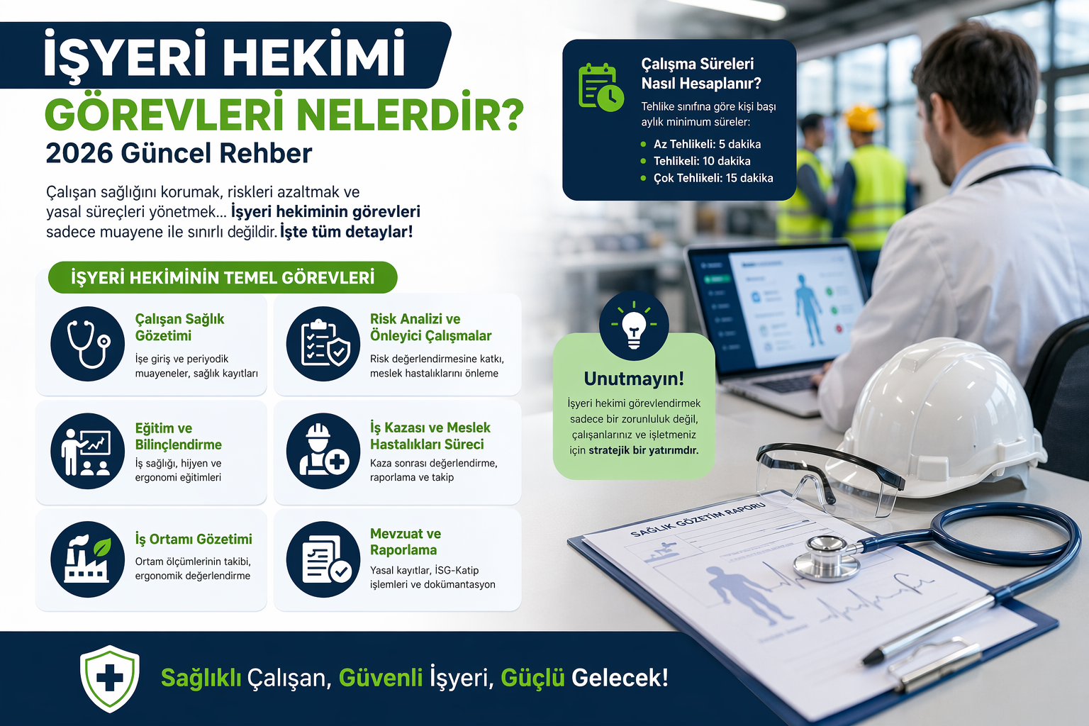 İşyeri hekimliği, çalışanların sağlığını korumak, iş kazalarını ve meslek hastalıklarını önlemek için hayati ö...